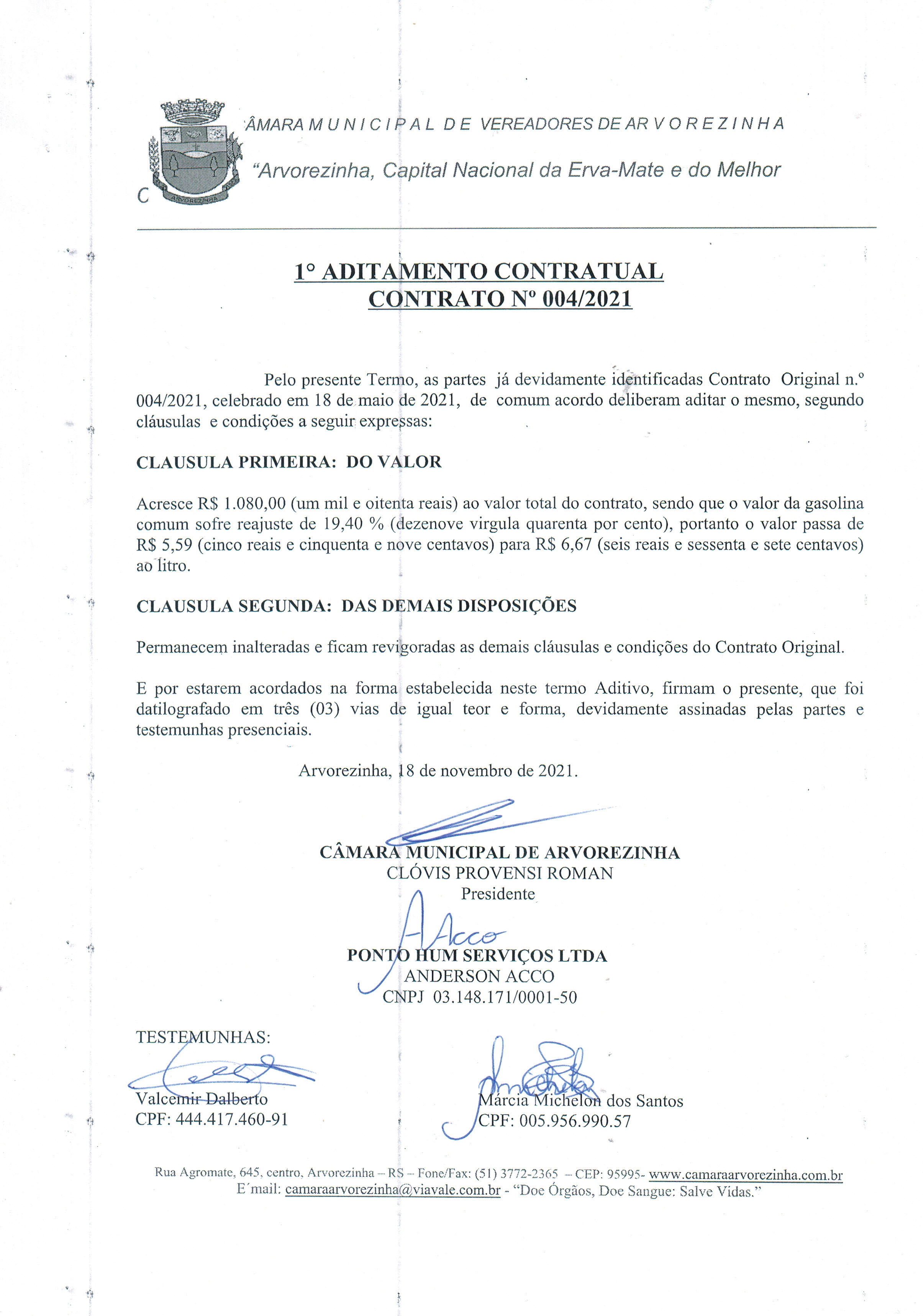 ADITIVO CONTRATO Nº 004/2021, DE 18 DE MAIO DE 2021